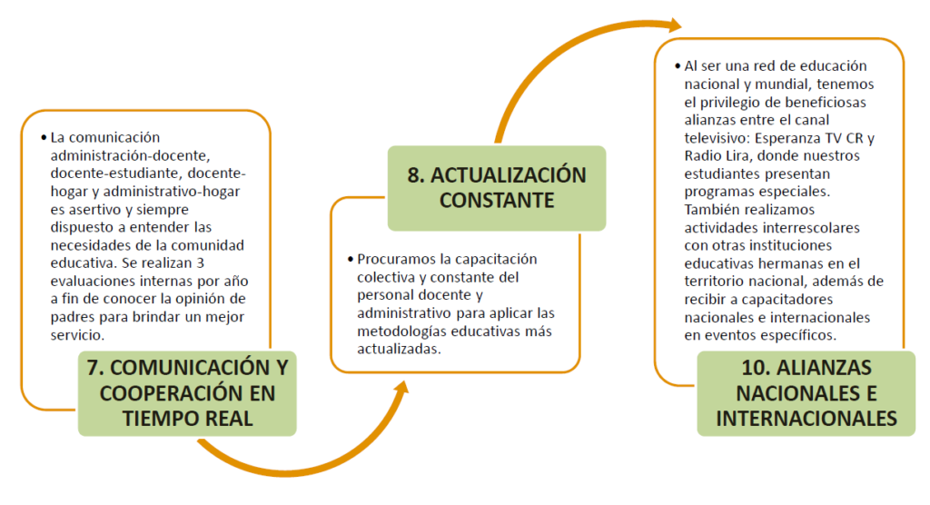Los estudiantes que egresan de nuestra institución demuestran alta formación en sus habilidades sociales, cuidado de la salud, hábitos de sana convivencia, inteligencia emocional y espiritual, amor por la naturaleza, habilidades artísticas y musicales, trabajo colaborativo, aprendizaje basado en proyectos, Inglés (A1 – C1), habilidad tecnológica en el uso de herramientas de office y principios de programación, preparación en las áreas lingüísticas y lógico matemáticas.